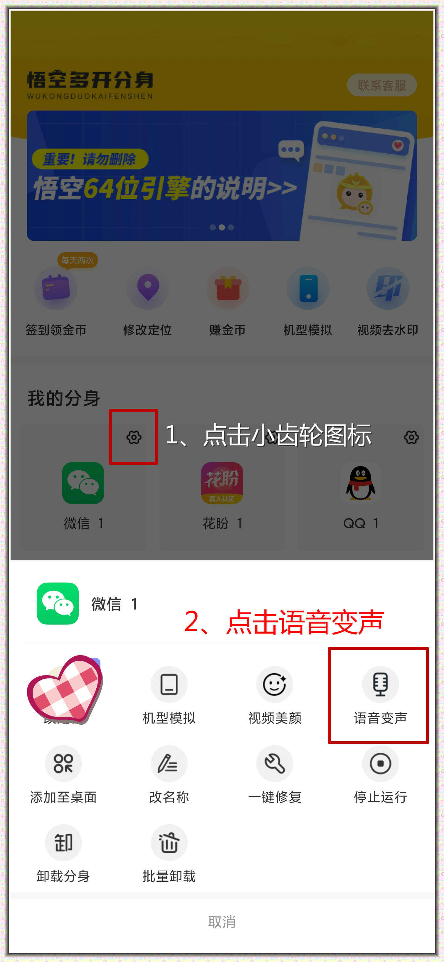 4. !重点!如果已安装过微信分身想使用美颜效果,必须删除已添加所有微信分身后,重新添加微信分身即可使用