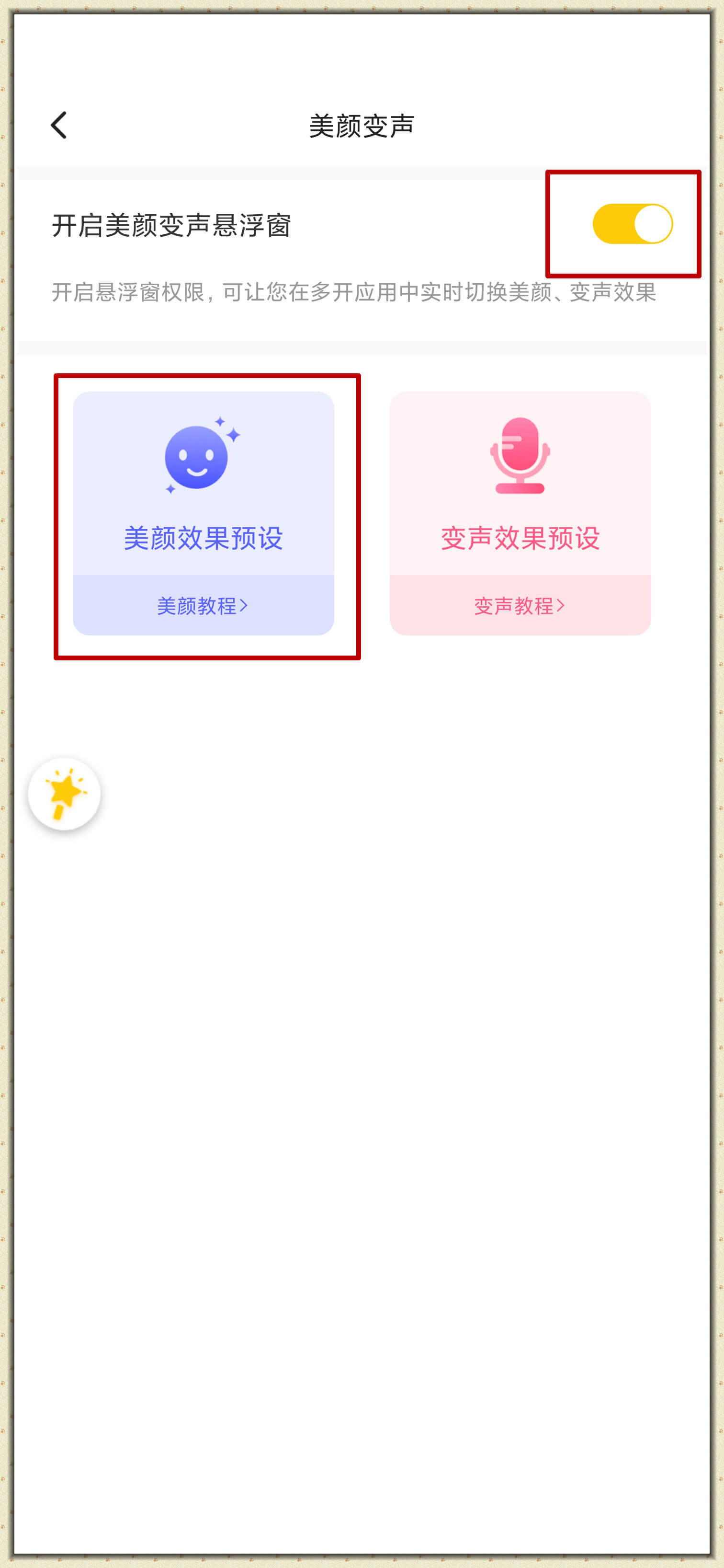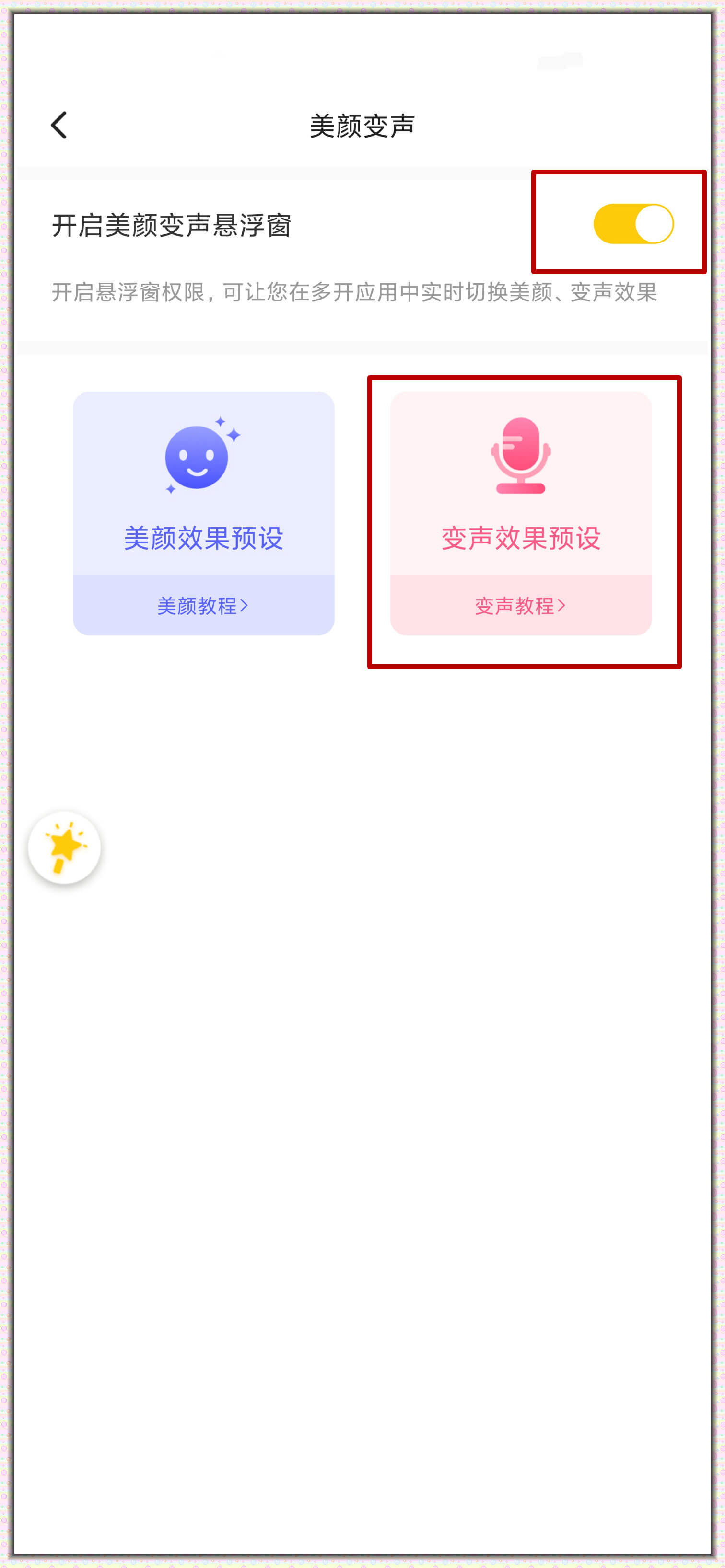 2. 开启美颜变声悬浮窗,可预览、设置美颜,变声效果