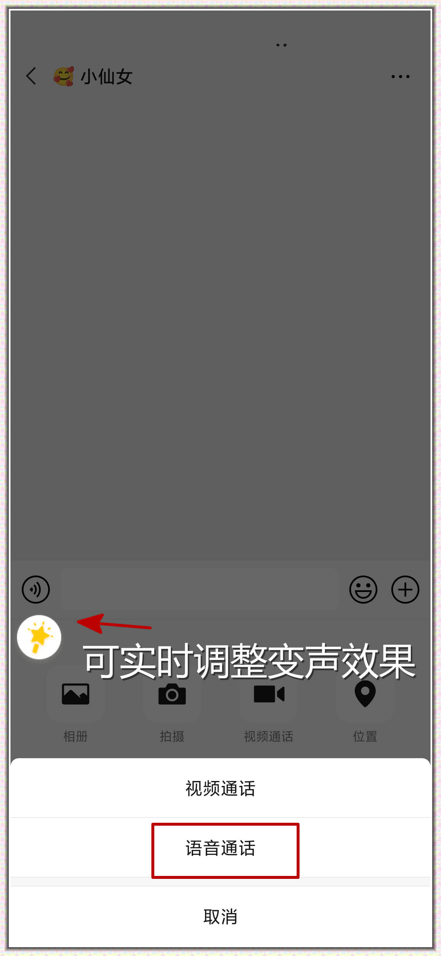 3. 悬浮窗开启后,发语音,语音通话可直接变声,点击魔法棒小图标,还可实时调整变声效果